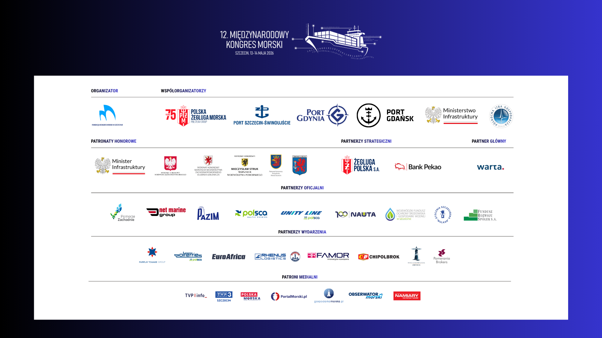 Podczas kongresu poruszymy kluczowe tematy branży morskiej: regulacje europejskie i IMO, bezpieczeństwo na Morzu Bałtyckim, wyzwania łańcuchów dostaw, funkcjonowanie armatorów w dynamicznym otoczeniu, rozwój portów i infrastruktury oraz wpływ geopolityki na globalną żeglugę. Nie zabraknie także dyskusji o stoczniach i sektorze offshore.